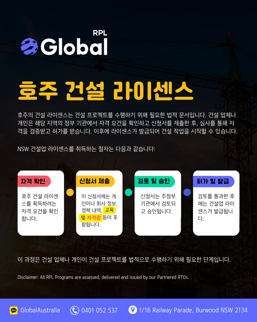 ํธ์ฃผ ๊ฑด์ค์ , ํ์ ๋ฐ ๋ผ์ด์ผ์ค ์ทจ๋