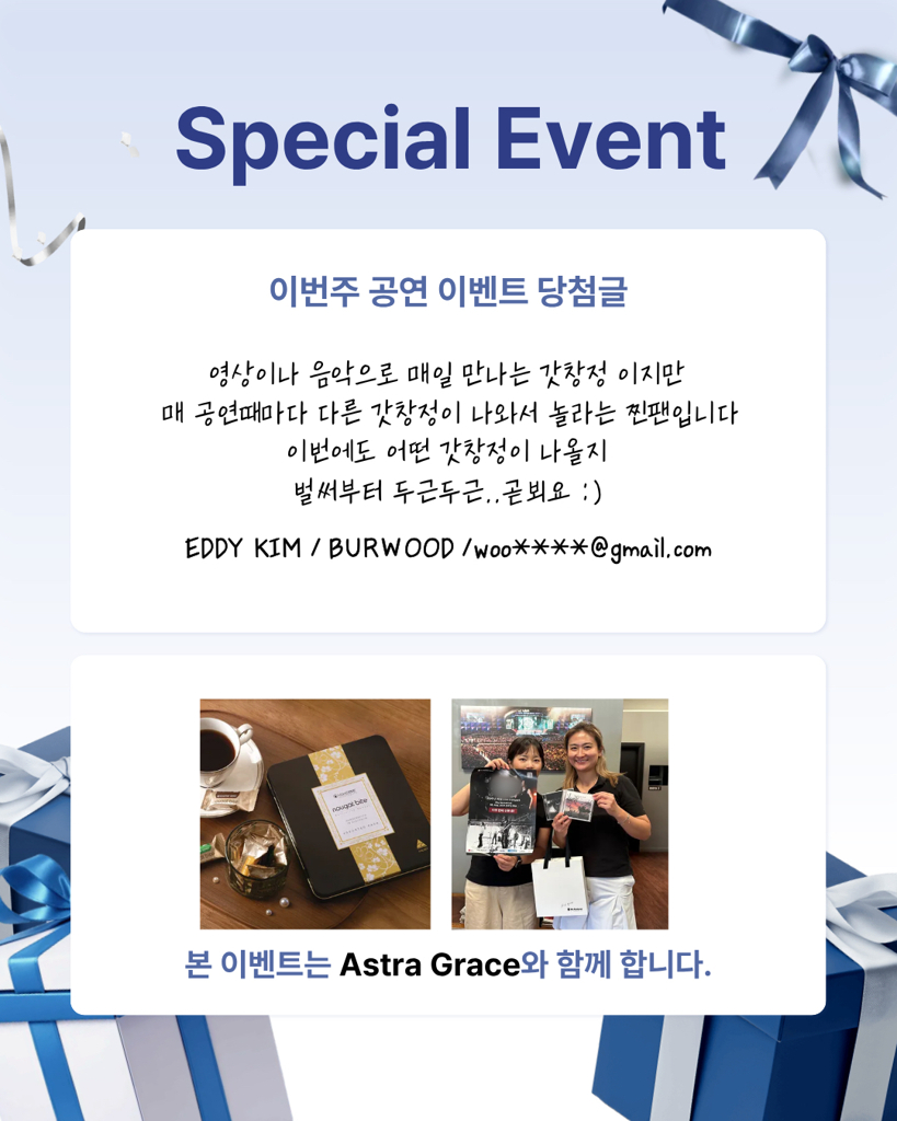 Astra Grace 에서 후원해 주시는 소정의 선물을 드립니다.