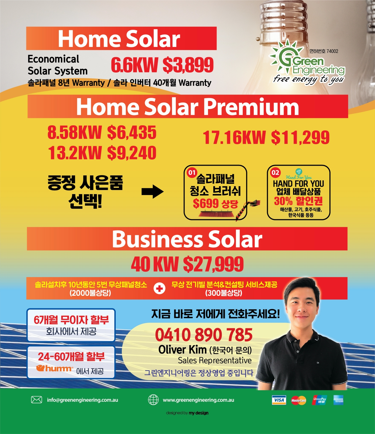 지금 바로 전화주세요! 0410 890 785 / Oliver Kim (한국어 문의)