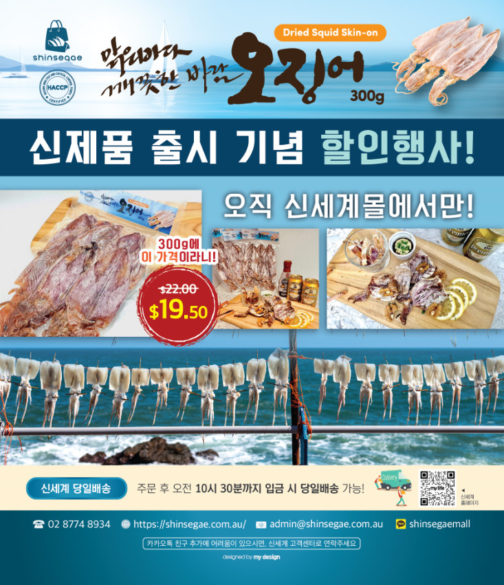 신세계몰 신제품 출시 기념 할인행사! 오징어 300g에 단 19.5불! 당일배송까지!